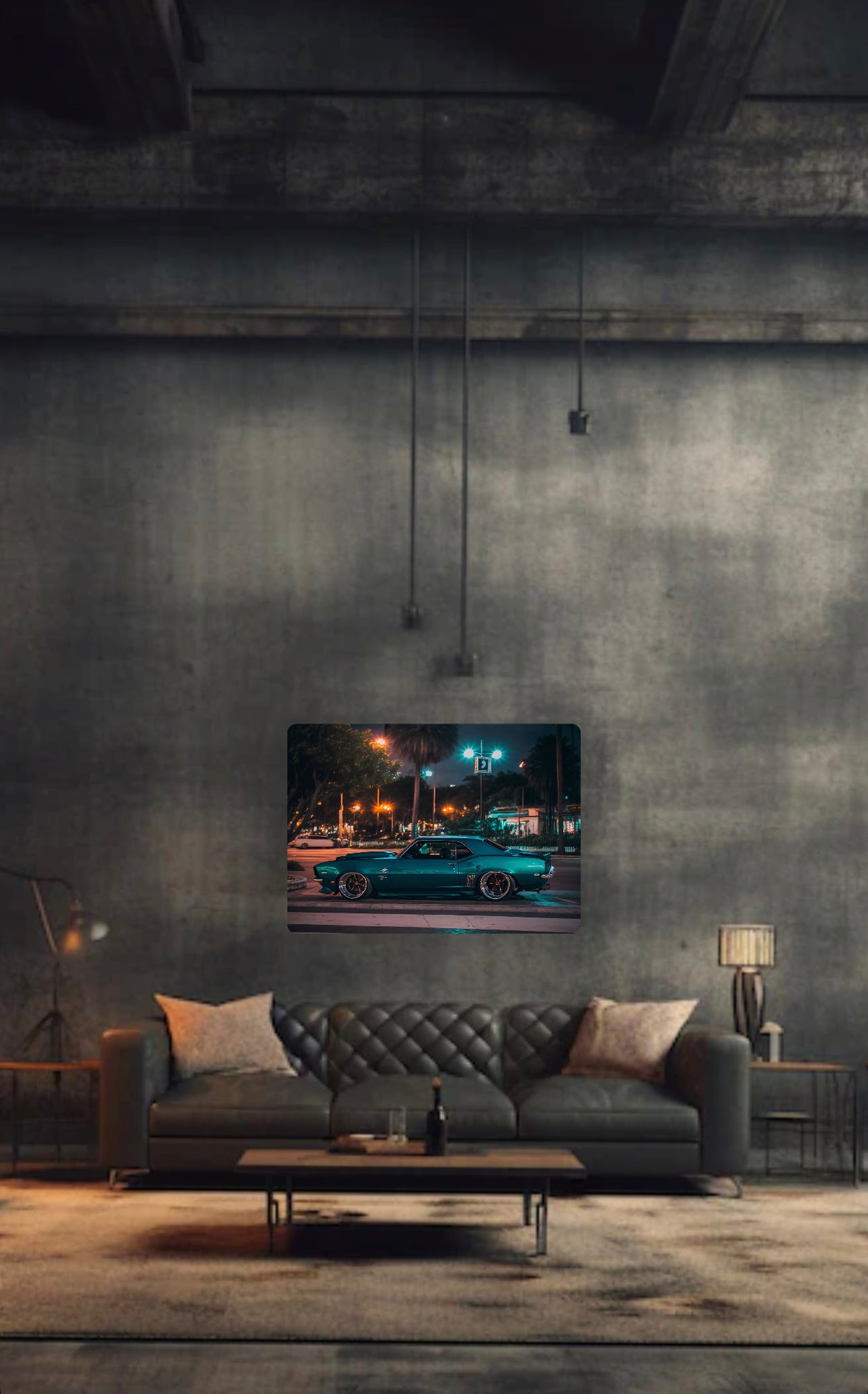 Introducing Eleanor, a captivating masterpiece in the world of automotive art. This alluring black muscle car, stripped of its wheels and tires, exudes a mysterious and powerful allure.