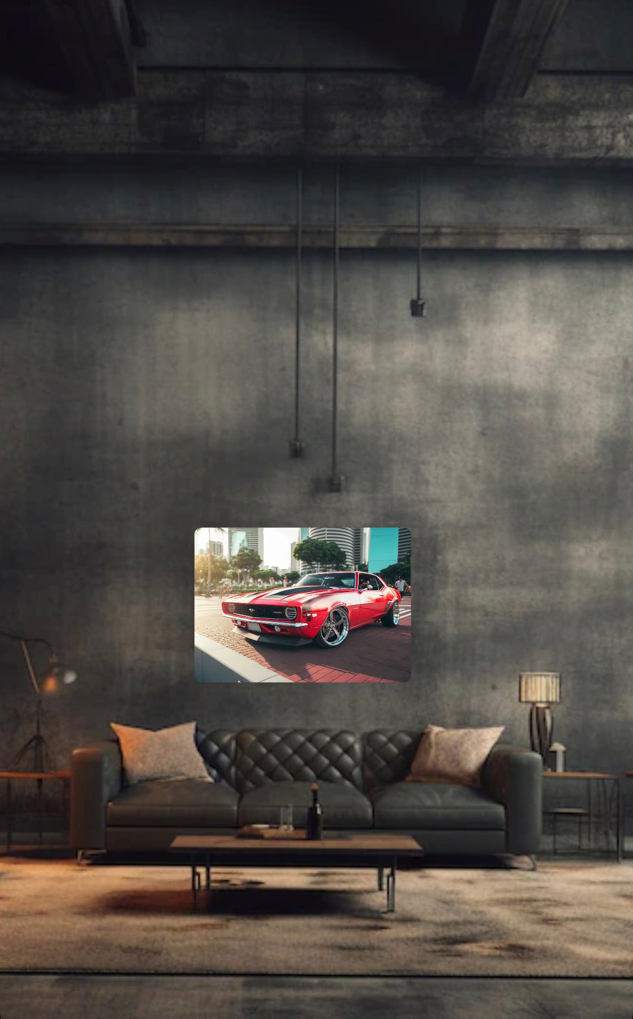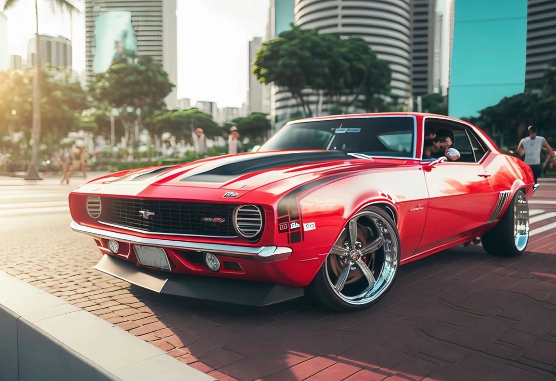 Introducing "Red Muscle" - a striking artistic masterpiece in the form of a red car, transformed with captivating black and white stripes. An exemplary creation within the arts industry.